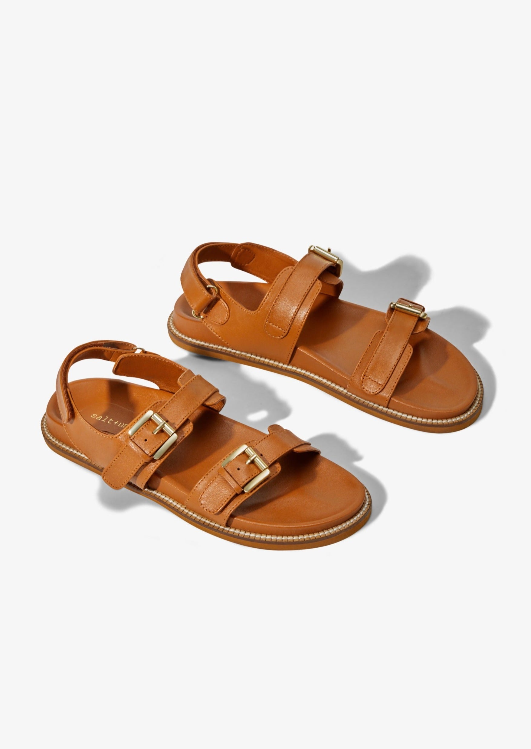 Embrace comfort and sustainability with the CAPRICORN platform footbed slide, crafted from 100% upcycled leather and components. With adjustable buckles and a velcro back strap, it offers the perfect fit every time. The super-comfortable and flexible sole makes it ideal for everyday wear, easily pairing with everything in your closet.