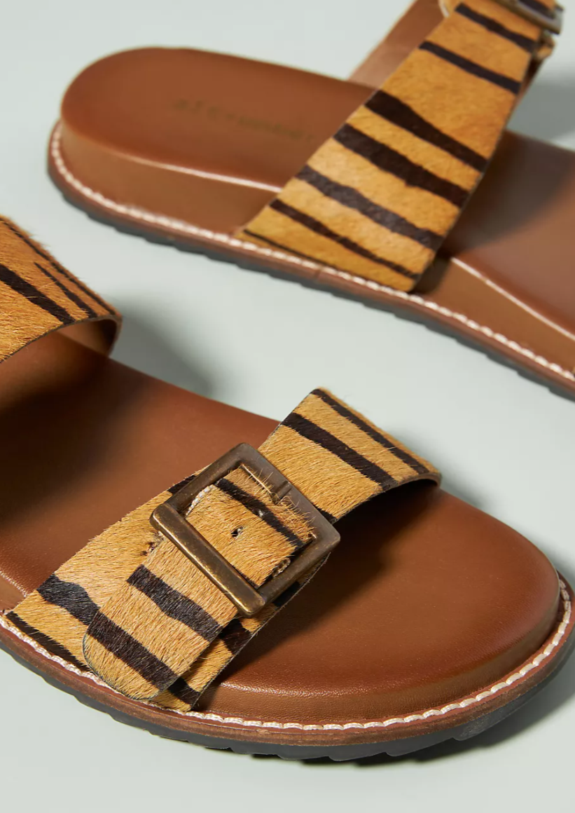 Bold, eye-catching, and designed for all-day comfort, this double-banded slide offers the perfect combination of elevated style and effortless wearability. Crafted with animal-printed haircalf uppers, this standout piece is designed to turn heads while delivering ultimate support and lift.