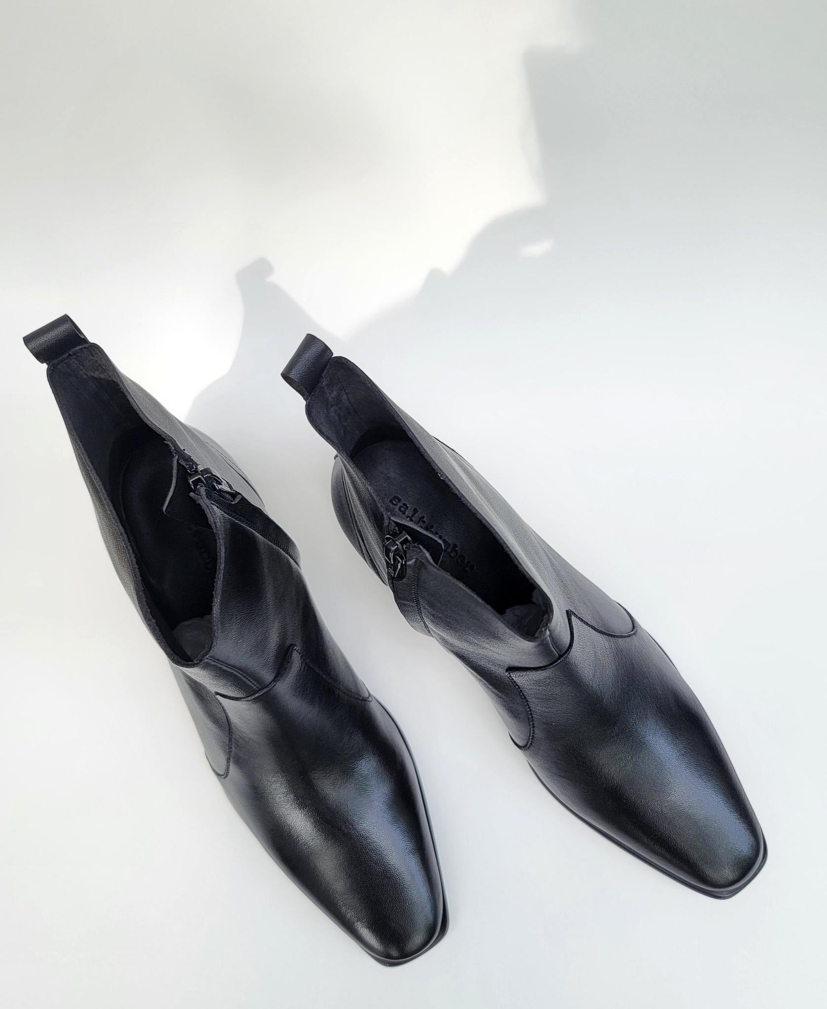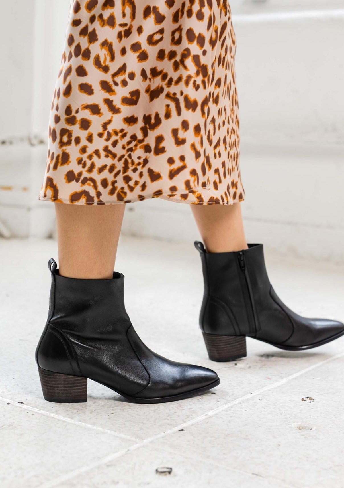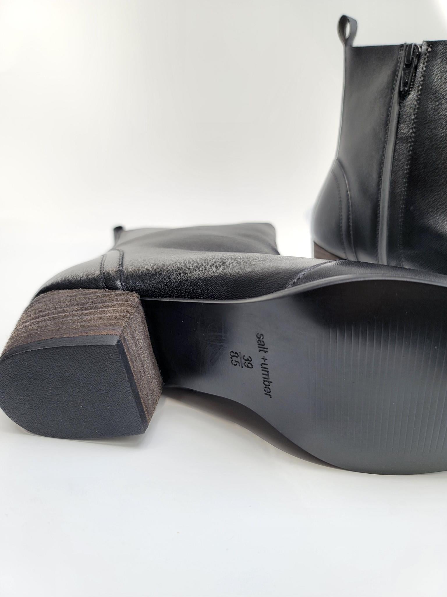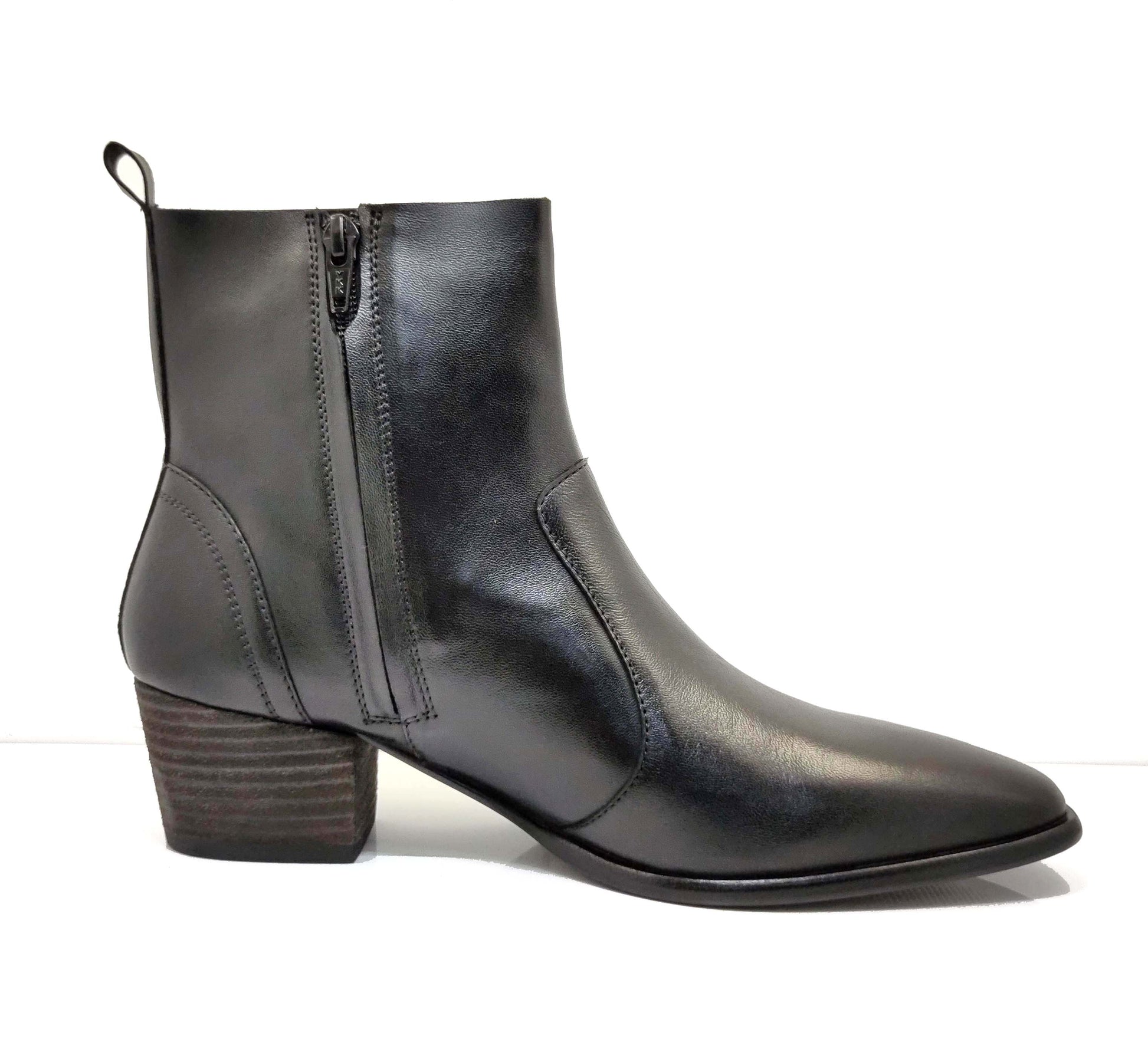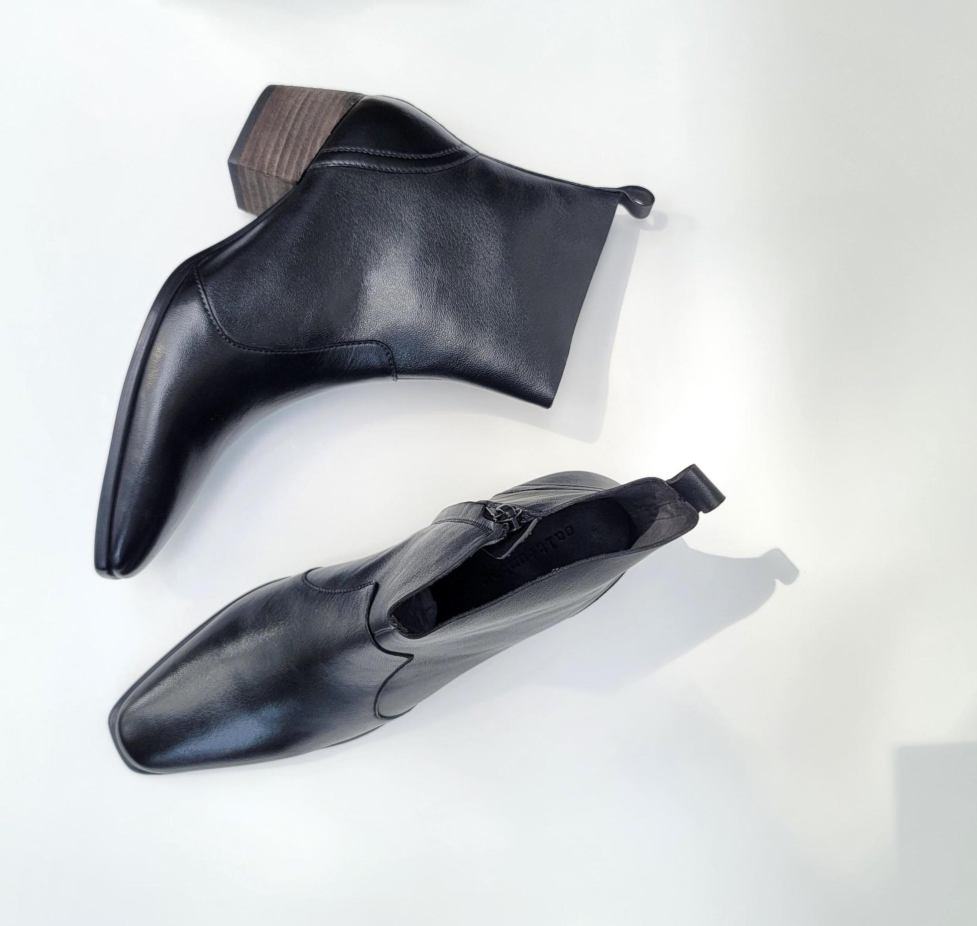 A gorgeous full grain leather mod-style boot with a slightly squared off toe and a short mod stacked heel. We LOVE the unlined leather, it is so soft and dreamy! This LBB (little black bootie) will go with everything! Dress it up or dress it down, these will be your new go-to boot for every occasion.