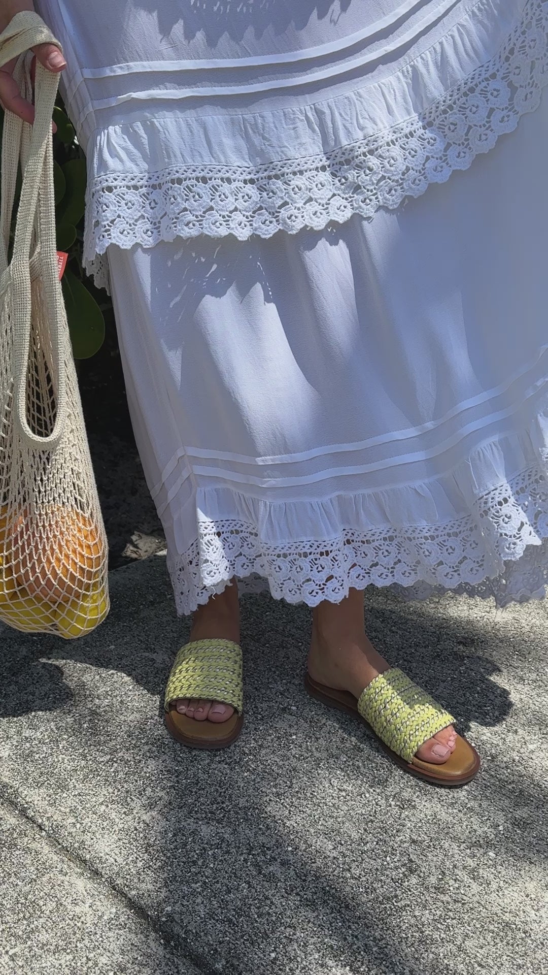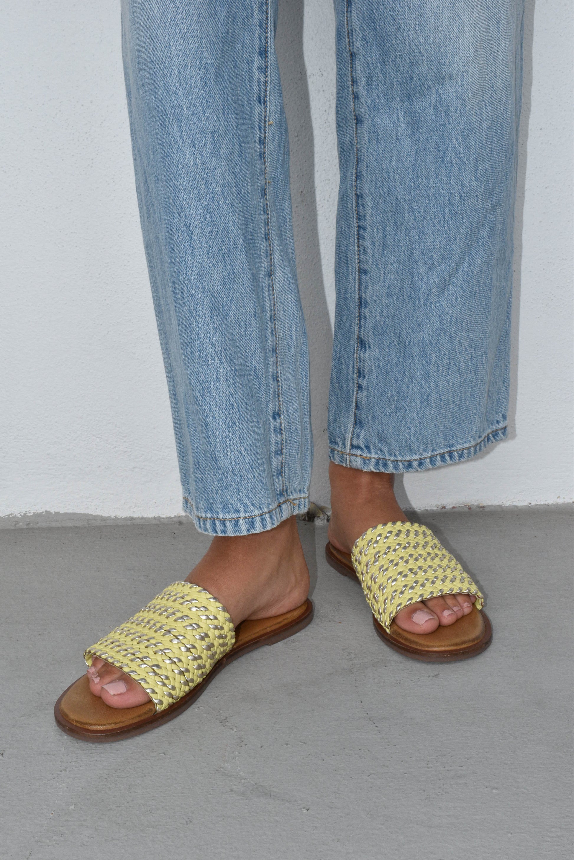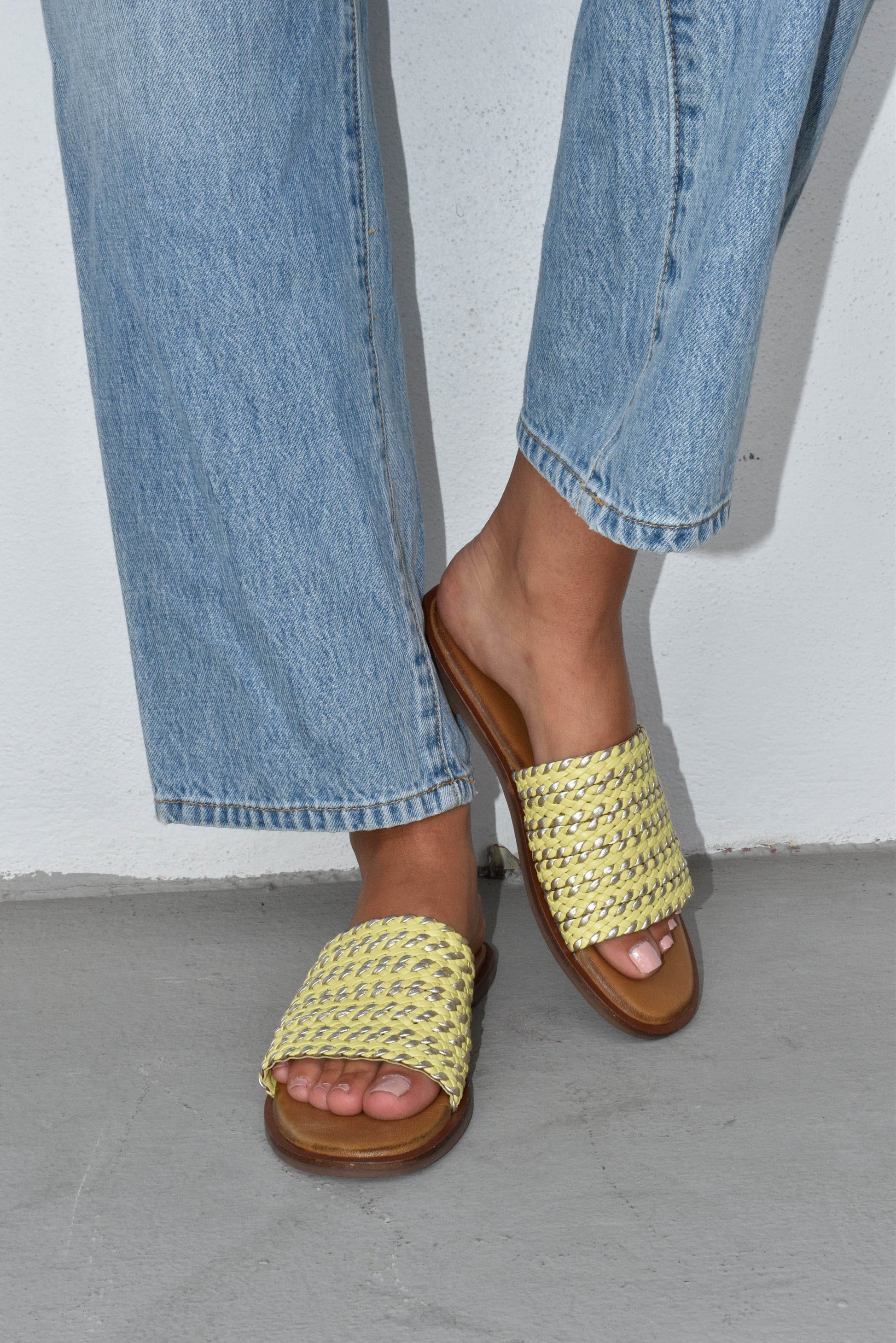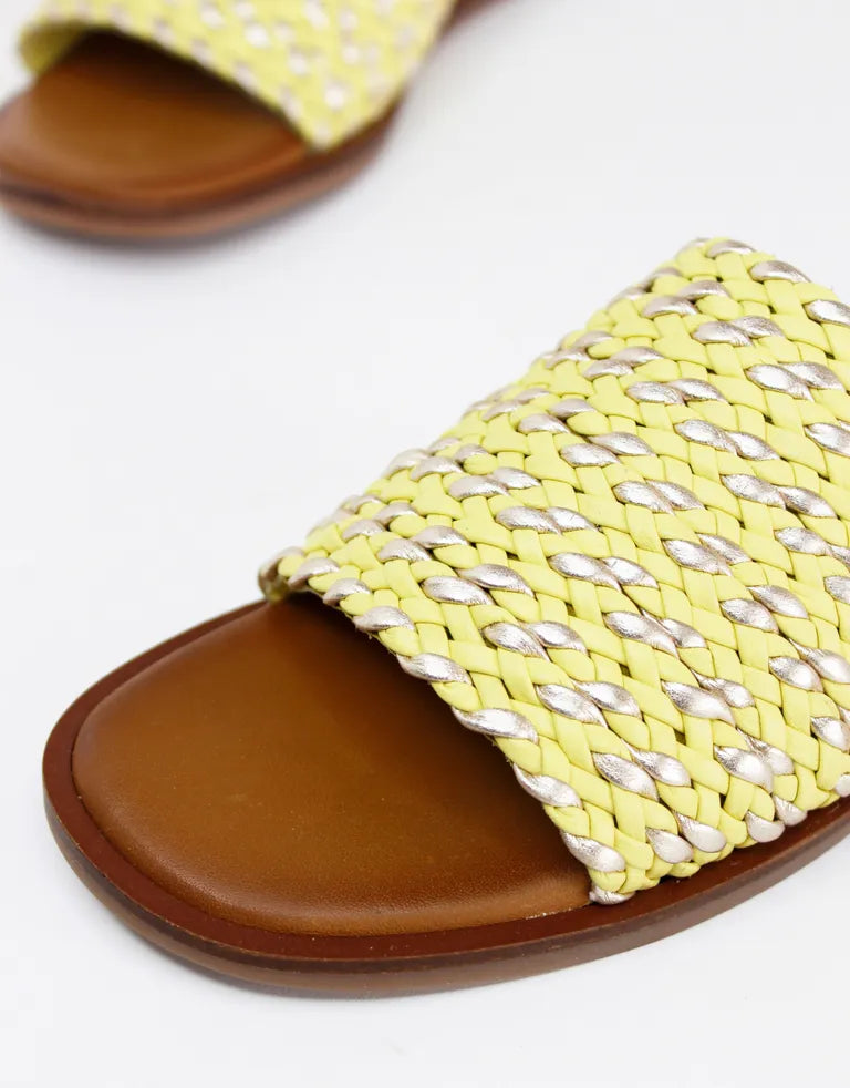 Color: A bright chartreuse yellow delivers a neon jolt, balanced by subdued washed gold woven throughout—fresh, citrusy, and full of energy.