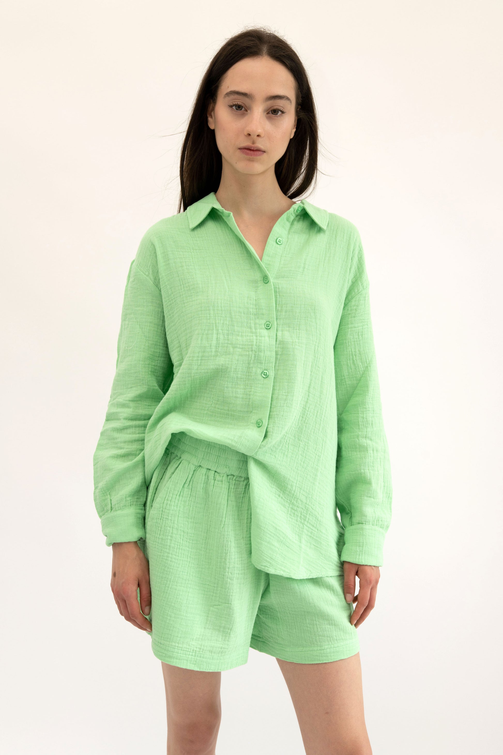 Effortlessly cool and endlessly versatile, this oversized long-sleeve button-down is made from 100% BCI-certified cotton gauze for a lightweight, breathable, and ultra-soft feel. Designed for easy layering, lounging, and everyday wear, it’s a must-have staple for any wardrobe.