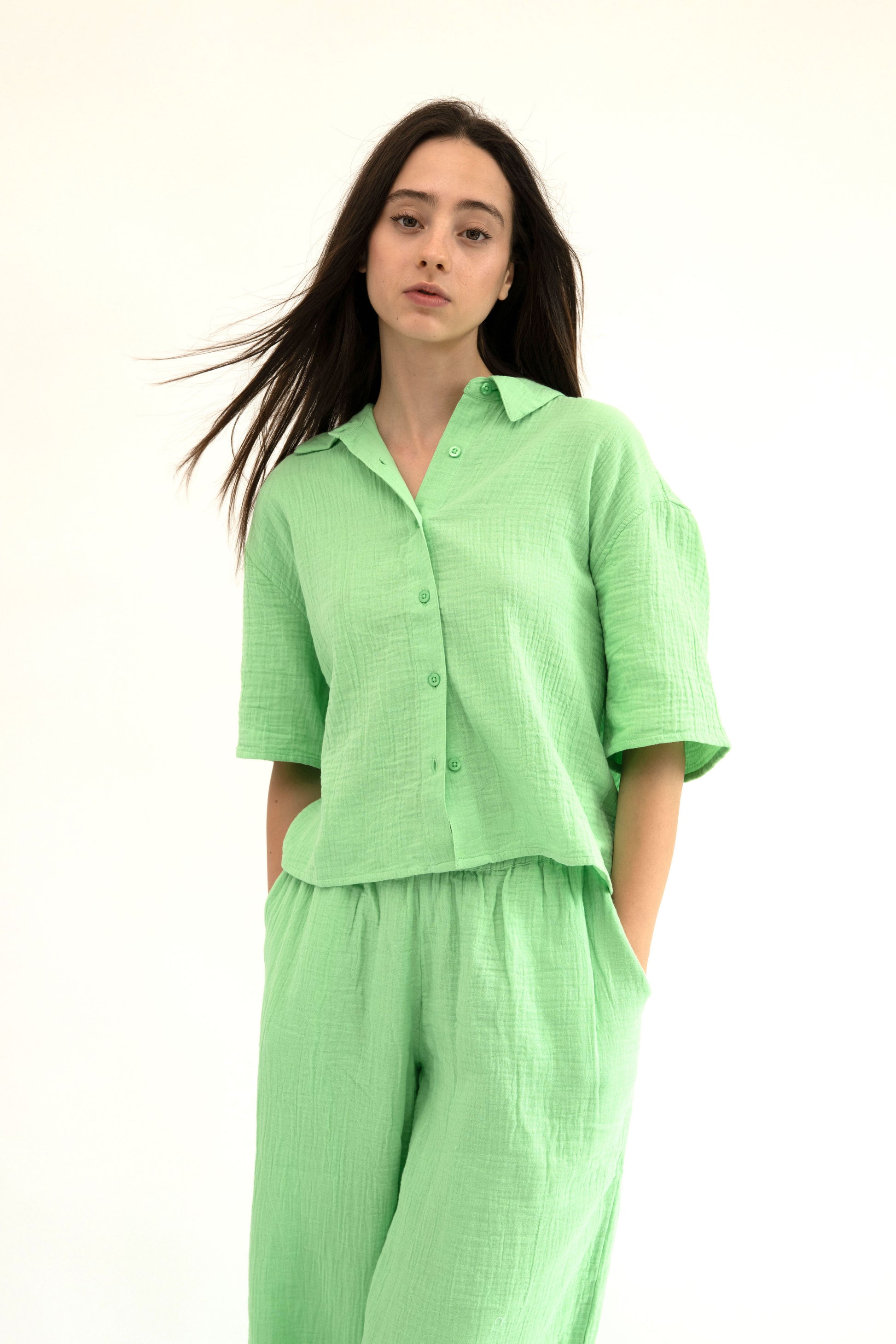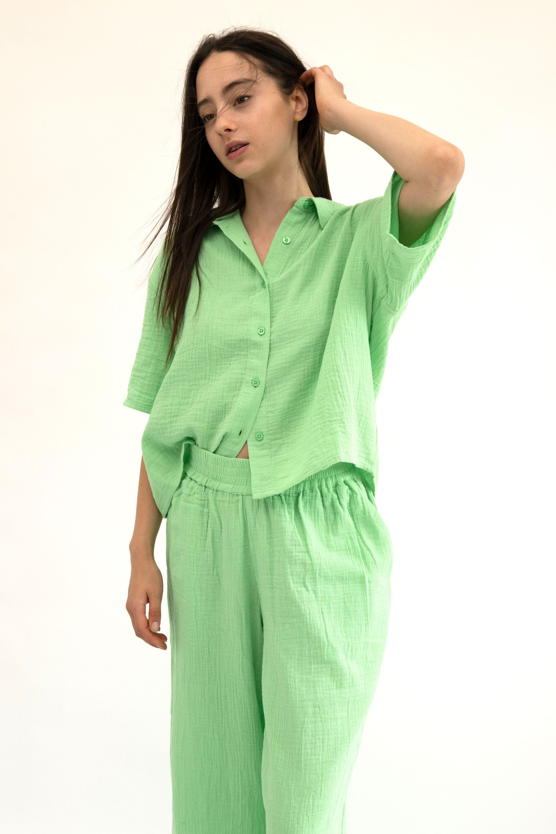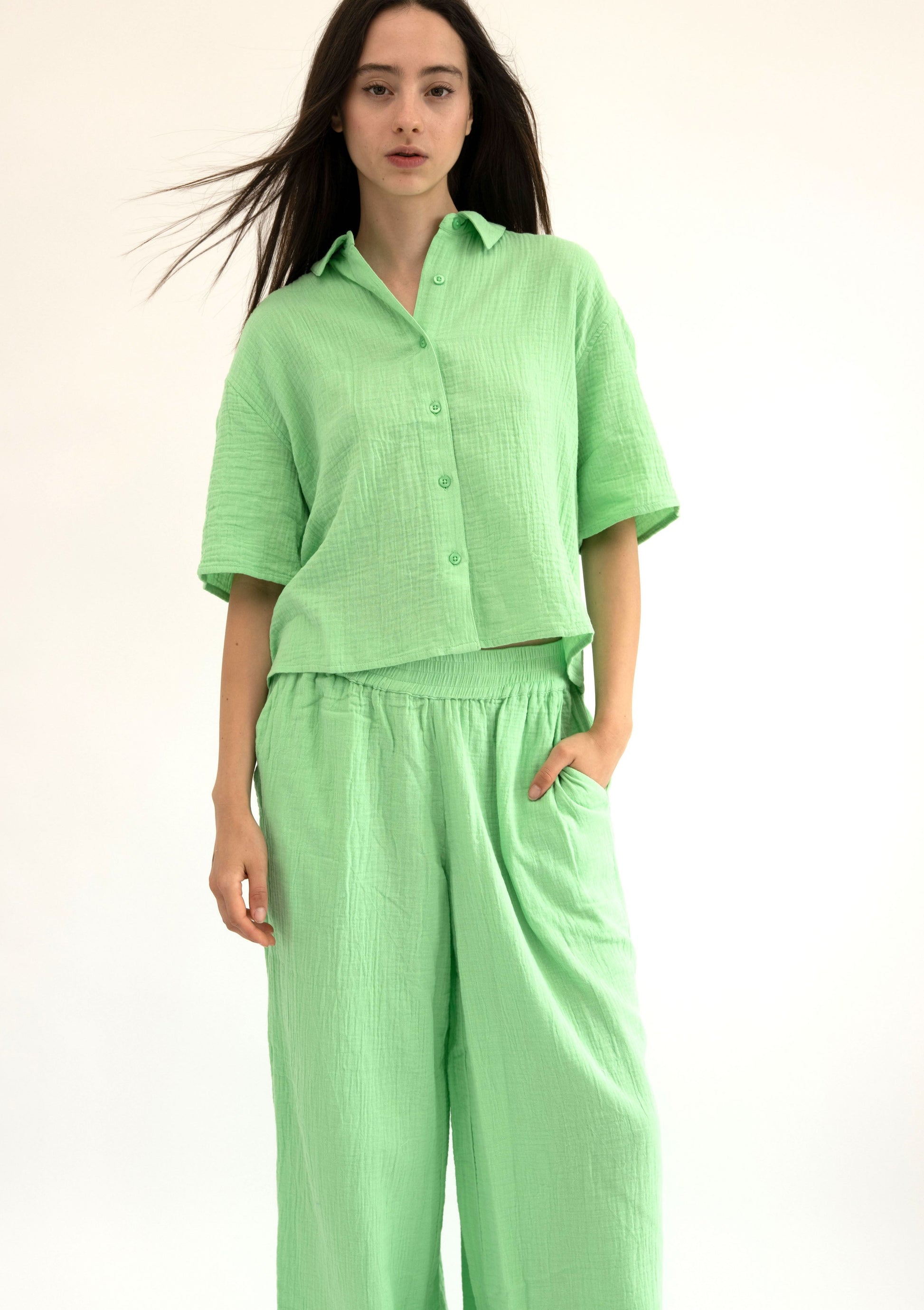 Lightweight, breathable, and effortlessly stylish—these 100% cotton gauze pants are designed for ultimate comfort. Made from BCI-certified cotton, they offer a soft, airy feel with a relaxed straight-leg silhouette, perfect for everyday wear.