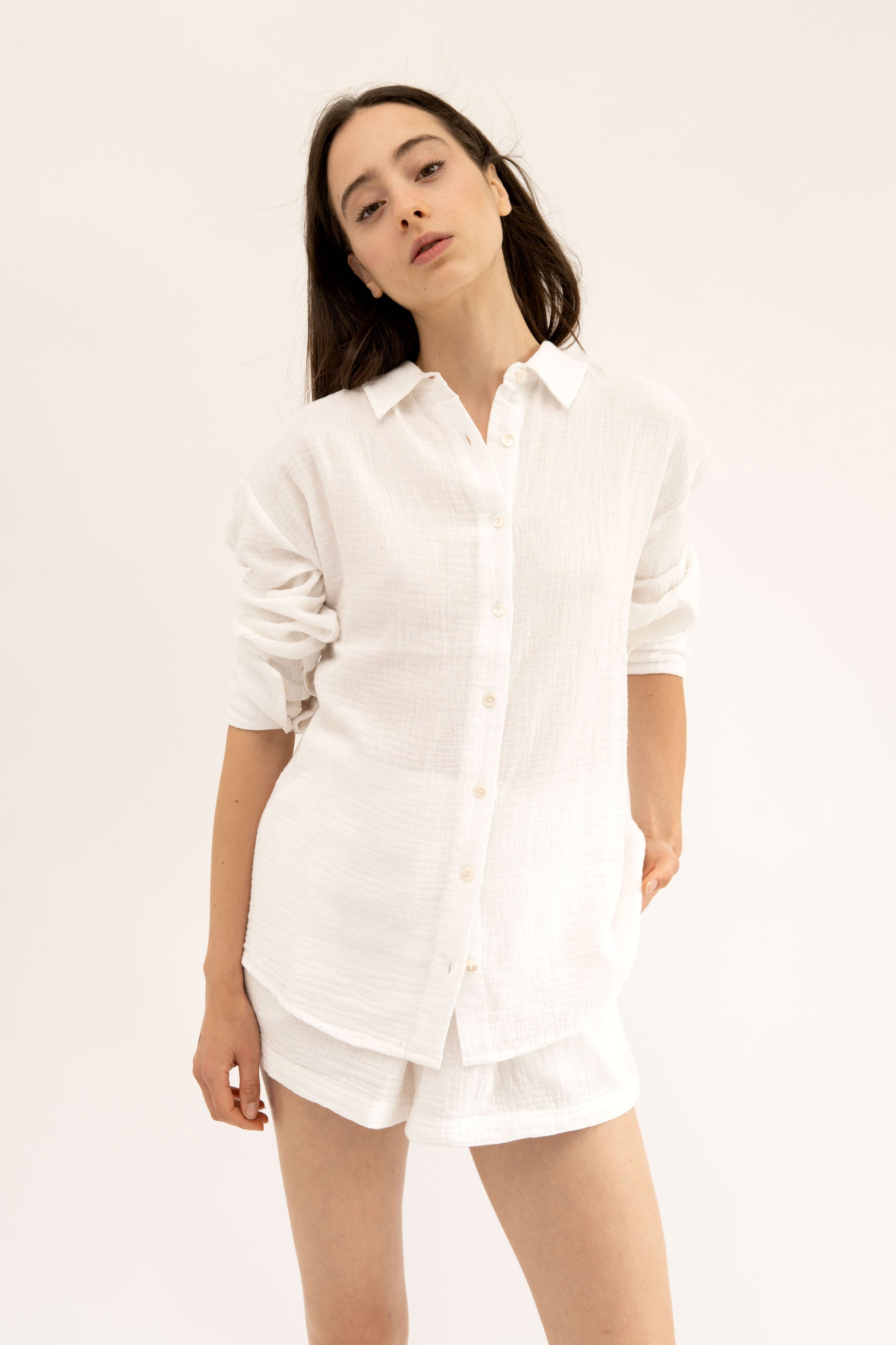 Light, breathable, and ultra-comfortable—these 100% cotton gauze shorts are a must-have for everyday wear. Made from BCI-certified cotton, they offer a soft, airy feel that’s perfect for lounging, layering, or casual outings.