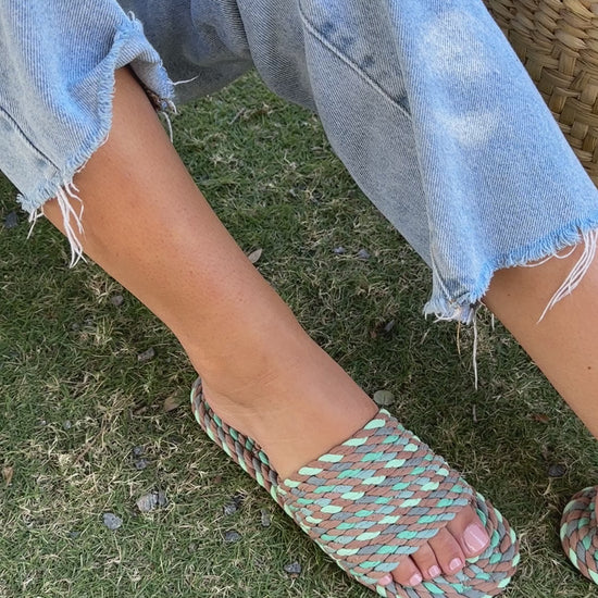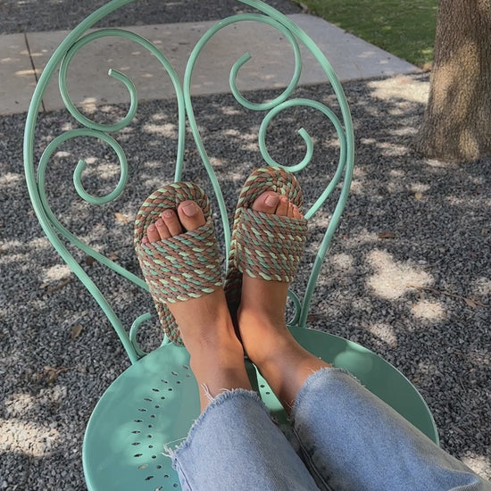 Inspired by our recent travels and the breathtaking hues of the sky and sea, the SUNNY vegan rope slide is a true statement of color and craftsmanship. Hand-dyed for a unique touch, this effortless slide is crafted with 100% vegan materials—right down to the linings and outsole.