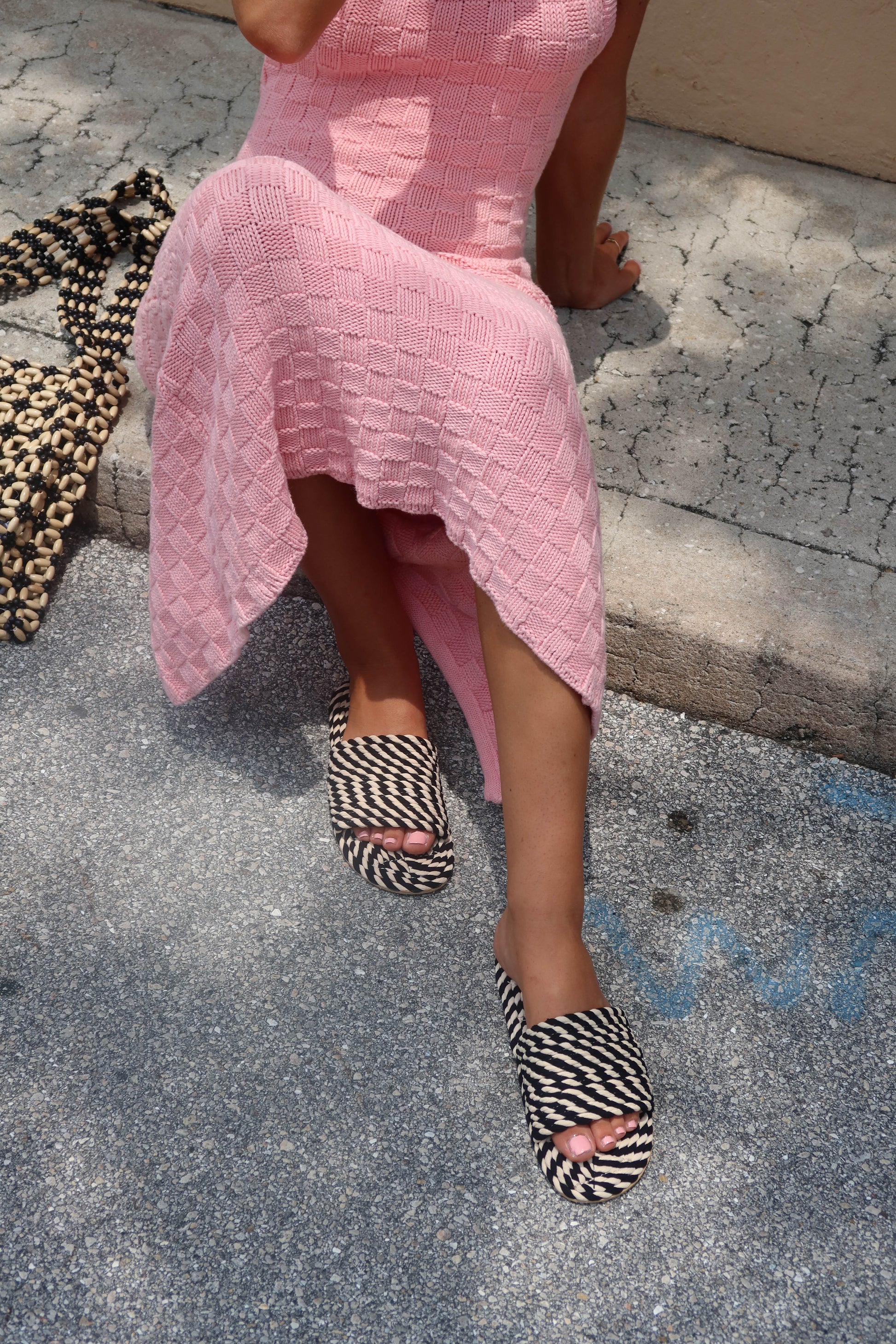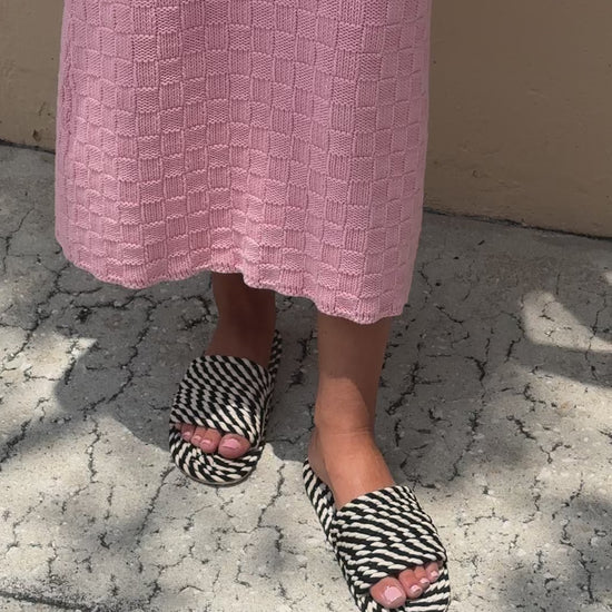 SUNNY - BLACK WHITE MULTI vegan rope slide sandal