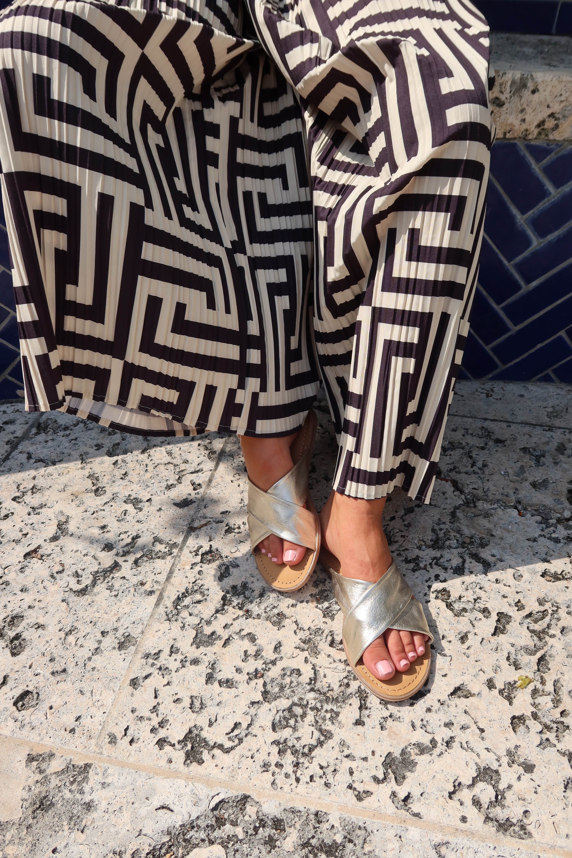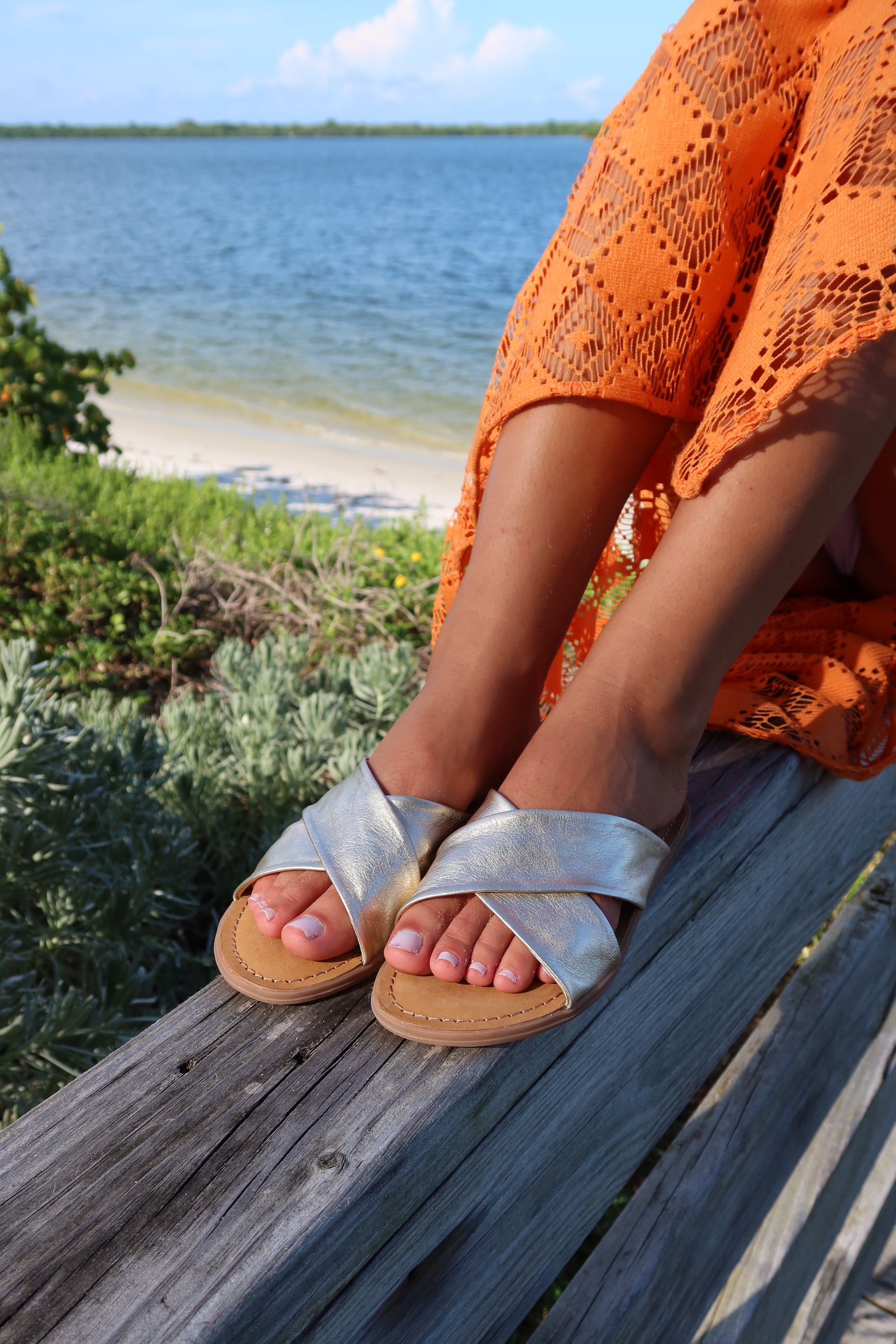 Elevate your everyday style with TROPICS, the next generation of our ultra-lux TROPEZ slide. Crafted from 100% genuine leather in a stunning shimmering washed gold, this minimalist design serves as the perfect neutral, adding elegance to any outfit.